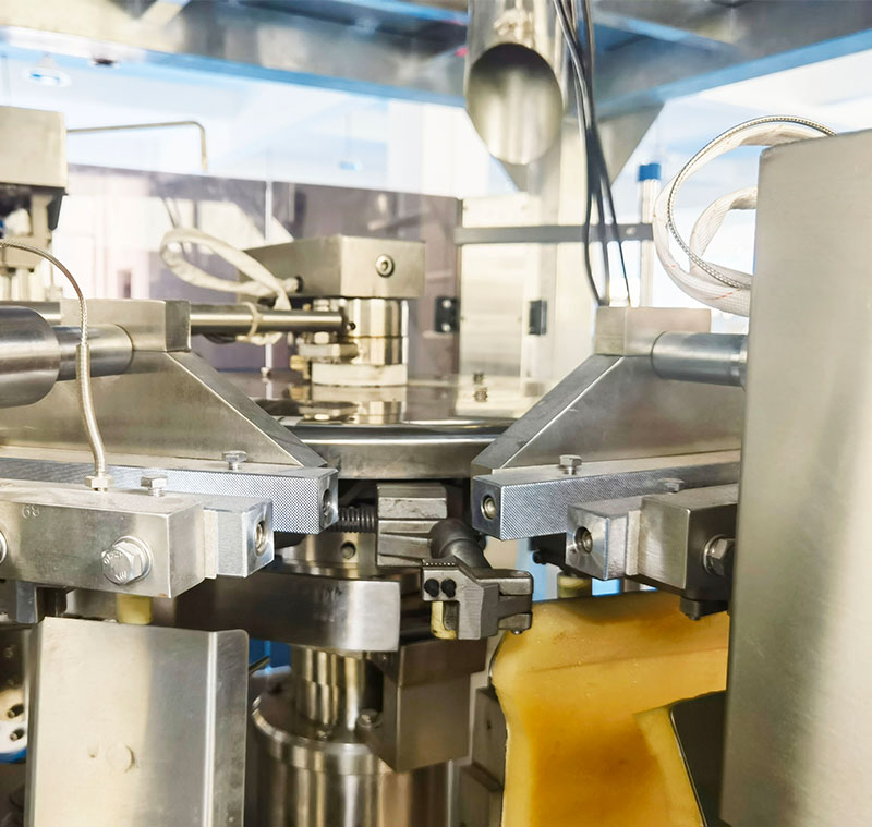4、封口技術(shù):采用熱封、冷封雙技術(shù),確保包裝后的成品牢固且外觀整潔,防止物料的泄漏。同時全自動稱重包裝機能夠保證包裝袋的平整度和美觀度,提升產(chǎn)品形象。