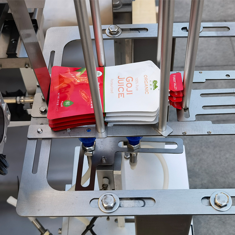 水平式液體包裝機的工作方式屬于高強度的自動化生產(chǎn)工序,首先,將預(yù)制袋整齊的放置在供袋處,供袋裝置通過先進的機械結(jié)構(gòu)與智能控制系統(tǒng),自動抓取預(yù)制袋,并將其準(zhǔn)確輸送至充填工位,在這個工作程序當(dāng)中,自動化預(yù)制袋包裝機可自動對包裝袋進行抓取與輸送工作,在經(jīng)過精確的控制定量原理的形成當(dāng)中,能夠?qū)崿F(xiàn)對流動性強的液體物料通過電子控制系統(tǒng)的配合,保證包裝袋的物料一致性。水平式液體包裝機通過實時監(jiān)測充填重量,確保每袋產(chǎn)品的重量誤差控制在極小范圍內(nèi)。自動化預(yù)制袋包裝機在經(jīng)過充填結(jié)束后,將會自動進入封口工位,運用熱封技術(shù)能夠精確控制加熱溫度、時間和壓力,確保封口質(zhì)量穩(wěn)定可靠,防止液體泄漏。