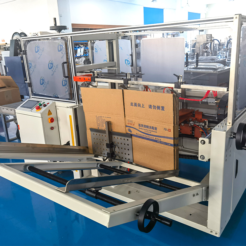②精準成型:設(shè)備搭載高精度光電傳感器與機械定位裝置,可對紙箱的尺寸、位置進行實時監(jiān)測與校準。在紙箱折疊、封底過程中,通過精密的機械折邊機構(gòu)與膠帶貼合系統(tǒng),確保紙箱折角精準、封底牢固。