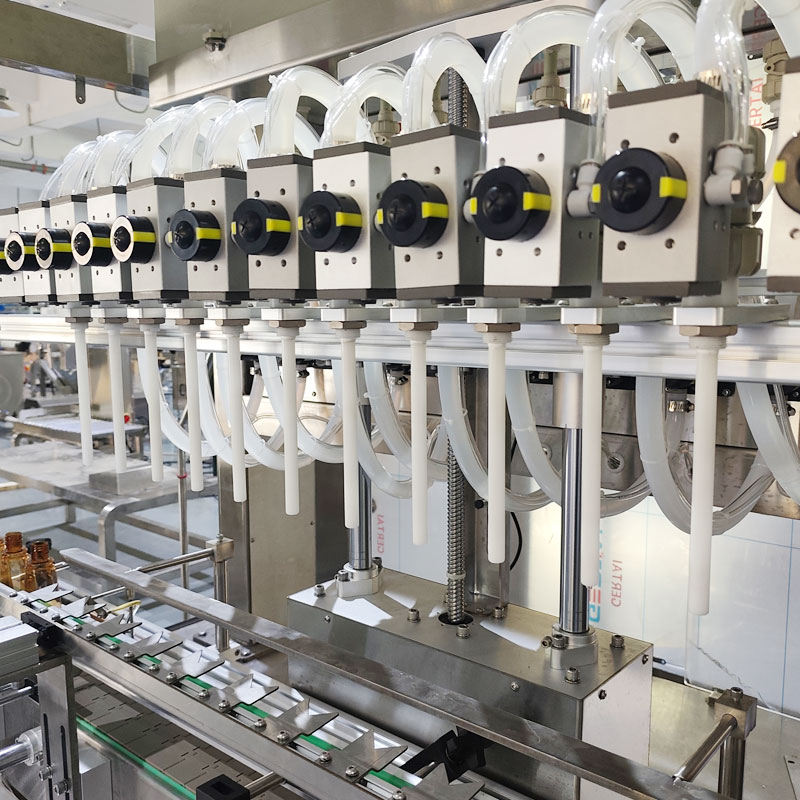 1.12頭灌裝結(jié)構(gòu)可同時(shí)完成多個(gè)容器的灌裝,適用于大規(guī)模消毒液生產(chǎn)需求,顯著提升生產(chǎn)效率。