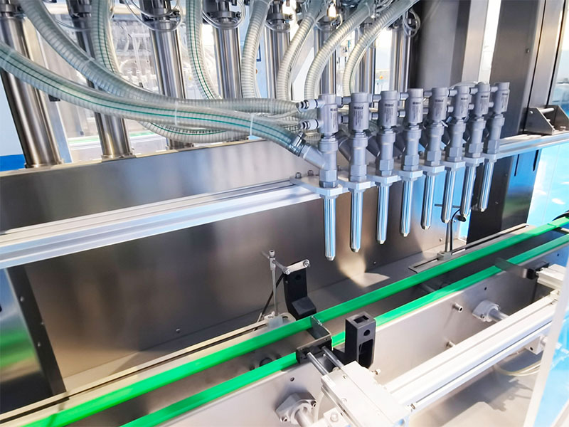 4、灌裝方式:該設(shè)備配備了多個(gè)灌裝閥,在經(jīng)過標(biāo)準(zhǔn)的參數(shù)設(shè)定后,多個(gè)灌裝頭能夠同時(shí)對(duì)準(zhǔn)與灌裝頭相等的容器口徑進(jìn)行充填運(yùn)動(dòng)。