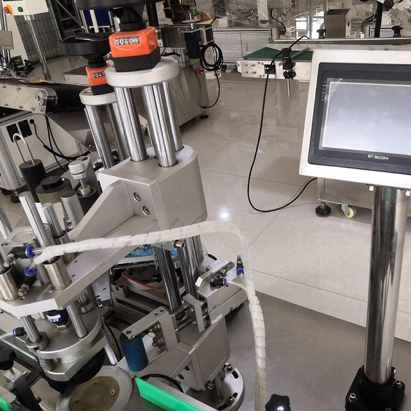 自動(dòng)化圓瓶定位貼標(biāo)機(jī)建議的操作流程,僅需一人即可完成,沒(méi)有復(fù)雜的操控,無(wú)學(xué)歷門檻的限制,即便是女性也能快速上手操作。操作人員將待貼標(biāo)的圓瓶放置在進(jìn)料輸送帶上,輸送帶會(huì)自動(dòng)將瓶子平穩(wěn)地送入分瓶機(jī)構(gòu)。它能夠精準(zhǔn)地將緊密排列的瓶子逐一分開,保證每個(gè)瓶子之間有合適的間距,避免在貼標(biāo)過(guò)程中出現(xiàn)瓶子相互碰撞。當(dāng)瓶子經(jīng)過(guò)多功能打印貼標(biāo)機(jī)的分瓶機(jī)構(gòu)時(shí),紅外感應(yīng)會(huì)實(shí)時(shí)檢測(cè)到瓶子輸送的位置,一旦檢測(cè)到瓶子經(jīng)過(guò),會(huì)快速想信號(hào)傳送給PLC控制系統(tǒng),此時(shí)的標(biāo)簽從標(biāo)卷上被剝離后,會(huì)在貼標(biāo)頭的作用下,準(zhǔn)確無(wú)誤地貼附在圓瓶的待貼標(biāo)位置上。