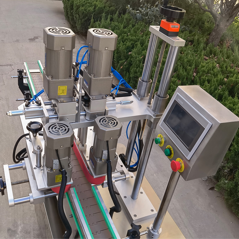 灌裝工作的收尾總是以理蓋、上蓋、旋蓋作為成品結束工序的一項。全自動夾蓋旋蓋機是星火智能設備新開發的一款多功能機械設備,多功能理蓋旋蓋機通過精心的設計結構,為玻璃瓶、塑料瓶、方形瓶、異形瓶等容器提供了良好的旋蓋效果。全自動夾蓋旋蓋機實現了從理蓋、上蓋、旋蓋全流程的自動化操作,操作過程無需人工干預,提高生產率。